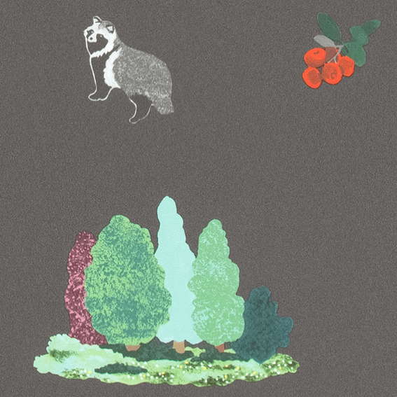 森にいそうな植物や動物を散りばめた、ファンタジーな世界観を表現したデザインです。