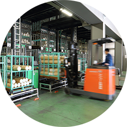 全国のグループ各社と直結したオンラインシステムからの出荷オーダーにジャストインタイムで対応して、営業の皆さんのサポートをしております。
